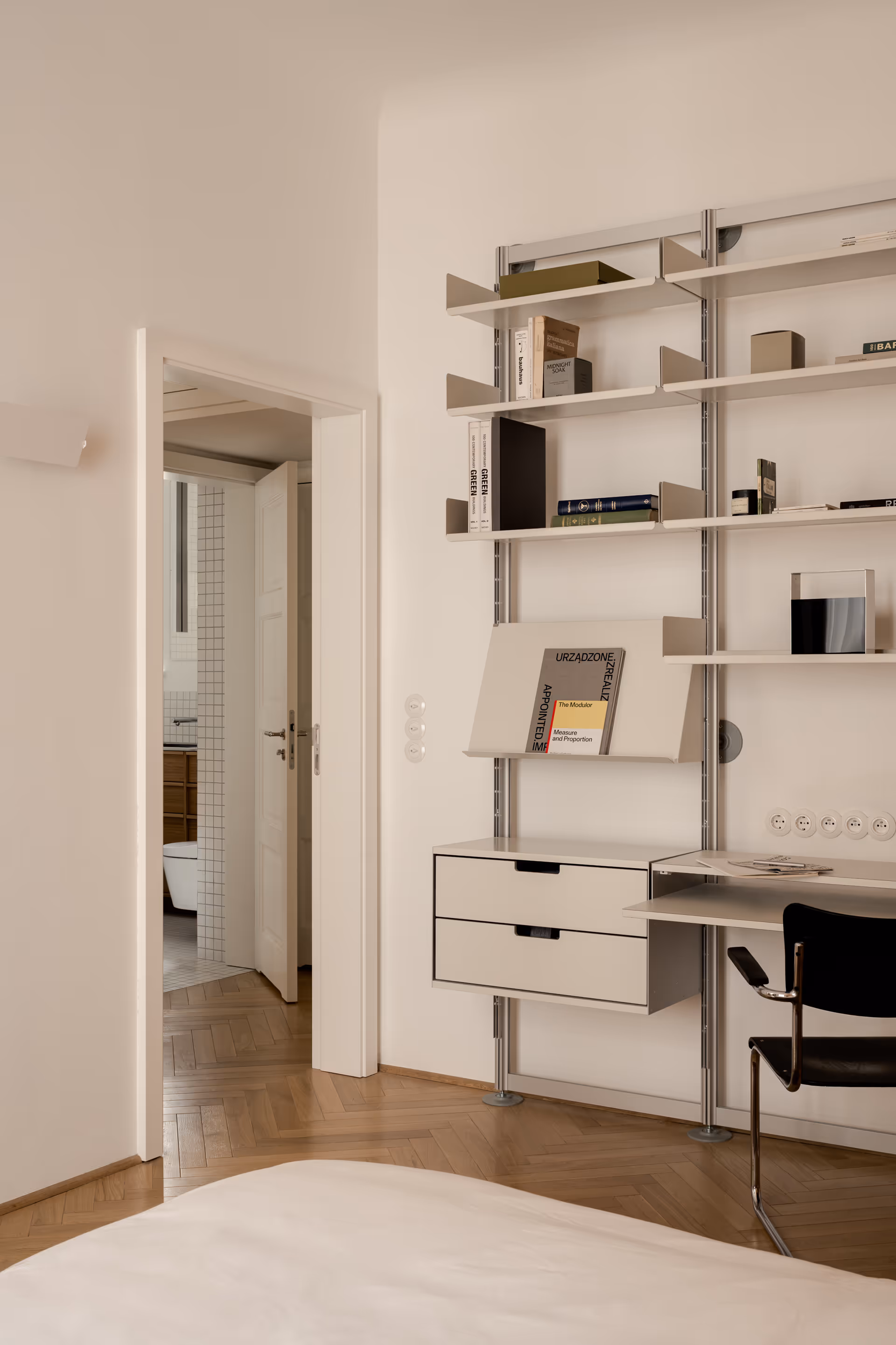 Mieszkanie zachowało swój niepowtarzalny, przedwojenny charakter. Zyskało natomiast wszystko, co niezbędne, aby prowadzić wygodne życie w centrum Warszawy. Jest ciche, przestronne i łatwo się adaptuje do zmieniających się potrzeb. Daje spokój i poczucie równowagi. Idealna przestrzeń do odpoczynku po intensywnym dniu albo długiej podróży.